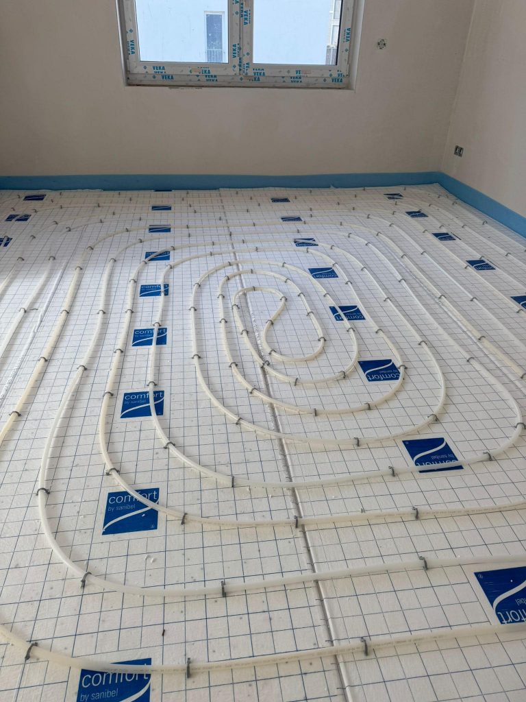 Im Durchschnitt sollte man eine Woche pro Zentimeter Estrich einplanen, obwohl wir Additive der besten Marken sowohl für ein schnelles Trocknen als auch für eine optimale Leistung Ihrer Fußbodenheizung verwenden.